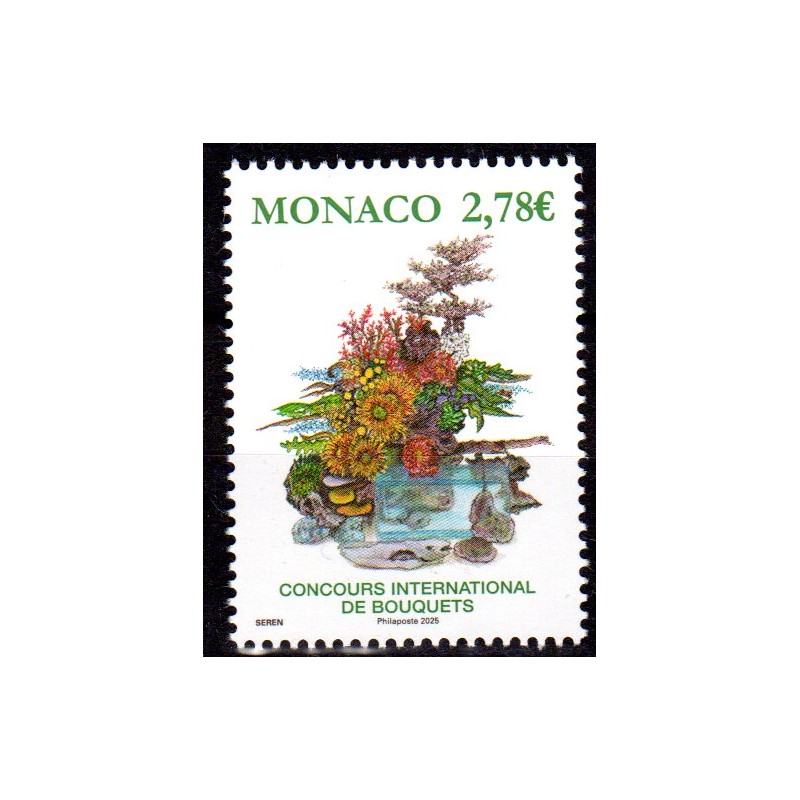 Organisé par le Garden de Club de Monaco, sous la présidence de S.A.R. la Princesse de Hanovre, le 56e Concours international de Bouquets se déroulera les 10 et 11 mai 2025. Le timbre est une représentation de l’un des bouquets gagnants de l’édition précédente qui avait pour thème « mers et océans ».