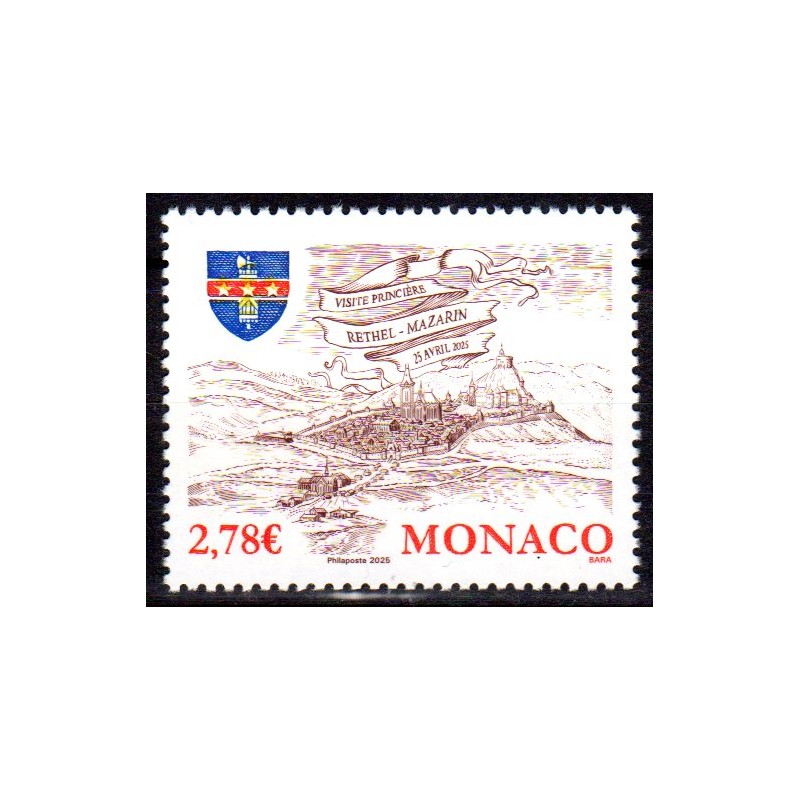 Le duché de Rethel-Mazarin a été apporté en 1777 en dot au futur prince Honoré IV par son épouse Marie-Félicité-Victoire d’Aumont-Mazarin, descendante d’Hortense Mancini, nièce du cardinal Mazarin et première duchesse du duché de Rethel-Mazarin. Cette princesse fut la mère des princes Honoré V (1819-1841) et Florestan Ier (1841-1856). Dans le cadre de Ses visites des Sites historiques Grimaldi de Monaco auxquels Il est très attaché, S.A.S. le Prince Albert II se rendra à Rethel le 25 avril 2025.