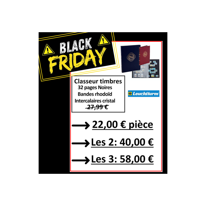 Leuchtturm. Classeur 32 pages noires pour timbres avec bandes rhodoïd