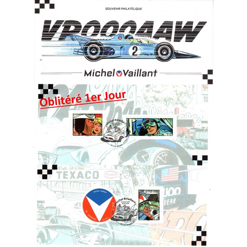 Le 30 juin 2025, La Poste émet un bloc d’un timbre et un souvenir philatélique à Michel Vaillant. Depuis plus de soixante ans, Michel Vaillant incarne la passion de la vitesse et le rêve automobile. Né sous le crayon affûté de Jean Graton, ce pilote intrépide à la mèche rebelle a laissé une trace indélébile aussi bien sur l'asphalte que dans l'univers de la bande dessinée