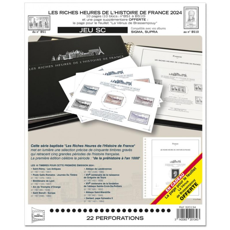 "Les Riches Heures de l'Histoire de France", ces dix bloc-feuillets émis chaque année pendant 5 ans mettent en lumière une sélection précise de cinquante timbres gravés qui retracent cinq grandes périodes de l'histoire française.