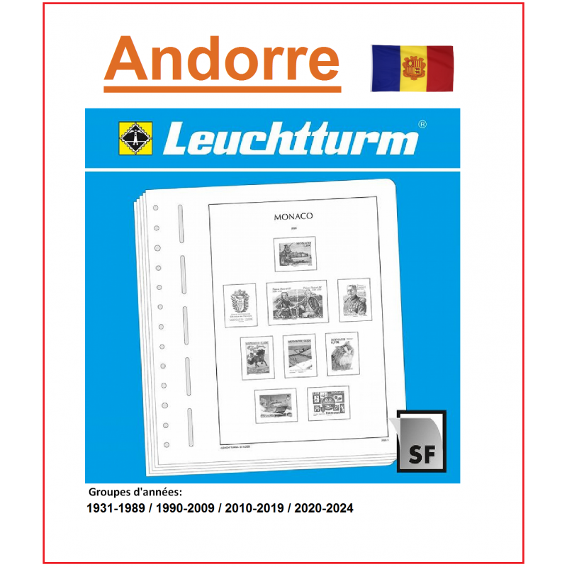 Leuchtturm. Feuilles préimprimées pour classer les timbres d'Andorre Poste française.