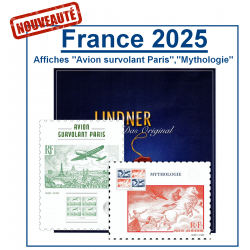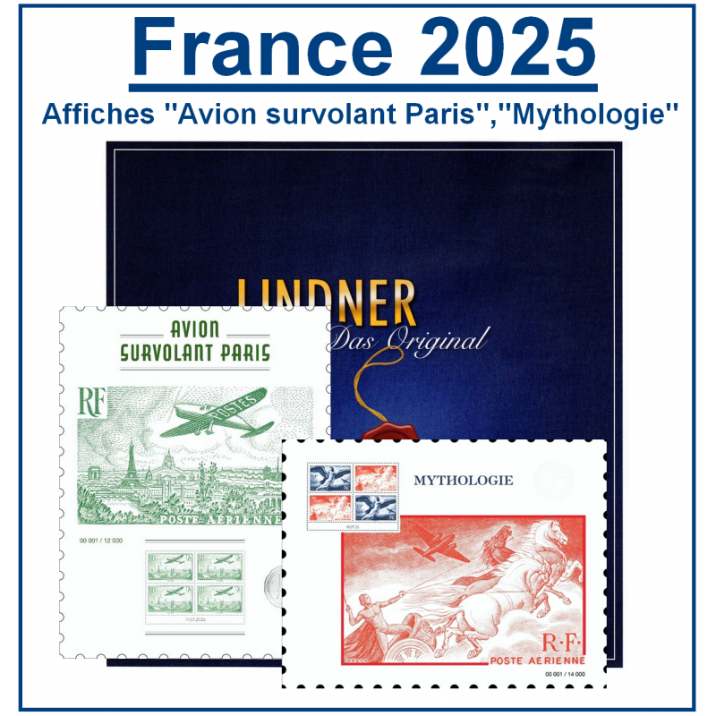 Lindner. Frankreich. Jeu France 2025, Affiche "Avion survolant Paris" et "Mythologie".