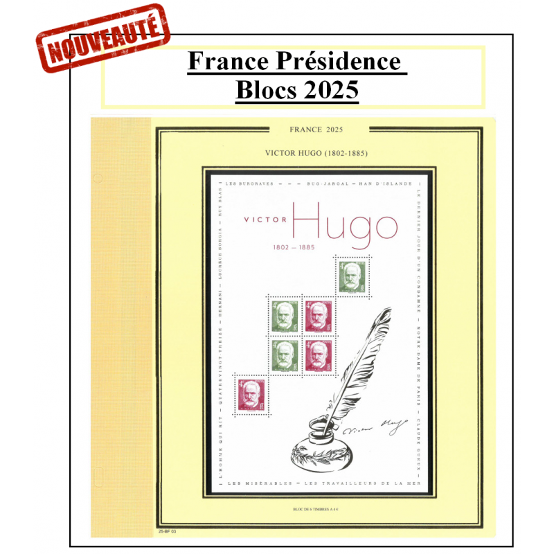 Feuilles complémentaires pour les blocs émis en 2025, "Expo Paris 1925", "55 ans de l'Imprimerie" et "Victor Hugo".