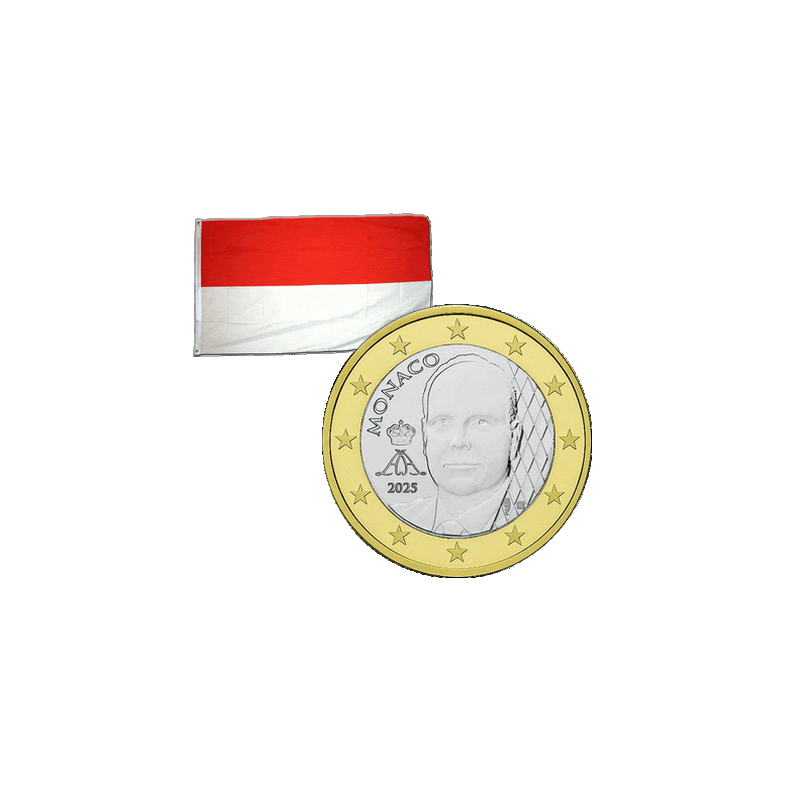 Pièce officielle 1 euro de 2025 représentant le nouveau portrait de S.A.S. le Prince Albert II.