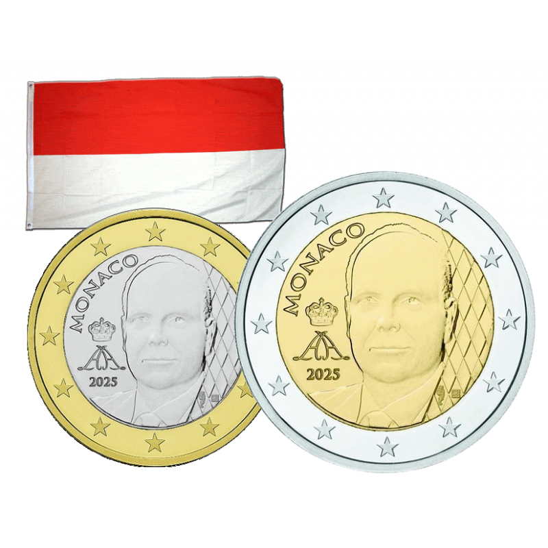 Pièce officielle de 1 et 2 euros de 2025 représentant le nouveau portrait de S.A.S. le Prince Albert II.