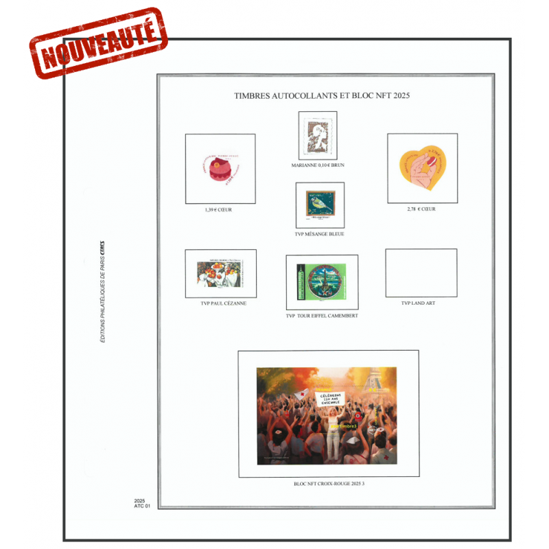 Feuille complémentaire pour les 6 timbres adhésifs et 12 NFT.