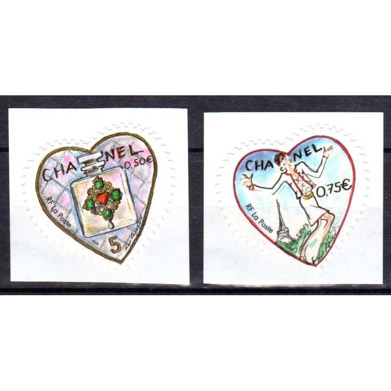 N° 39A 0,75€ multicolore. Le tailleur Chanel sur fond avec Tour Eiffel dans un coeur